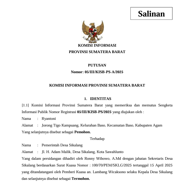 PUTUSAN Nomor: 05/III/KISB-PS-A/2025 Putusan Sidang Ajudikasi Admin 25 September 2025 16:09:12 WIB 99 DOWNLOAD DOKUMEN