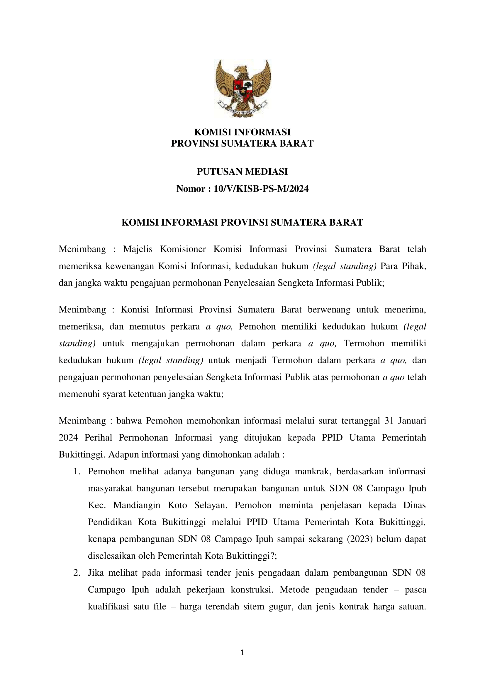 Putusan Mediasi No. 10_V_KISB_PS_M_2024 Informasi Tersedia Setiap Saat Admin 22 April 2025 15:15:25 WIB 473 Informasi selengkapnya dapat di download disini