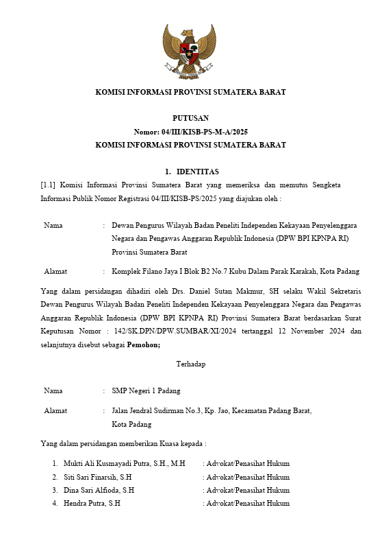 PUTUSAN Nomor: 04/III/KISB-PS-M-A/2025 Putusan Sidang Ajudikasi Admin 25 September 2025 16:06:27 WIB 81 DOWNLOAD DOKUMEN